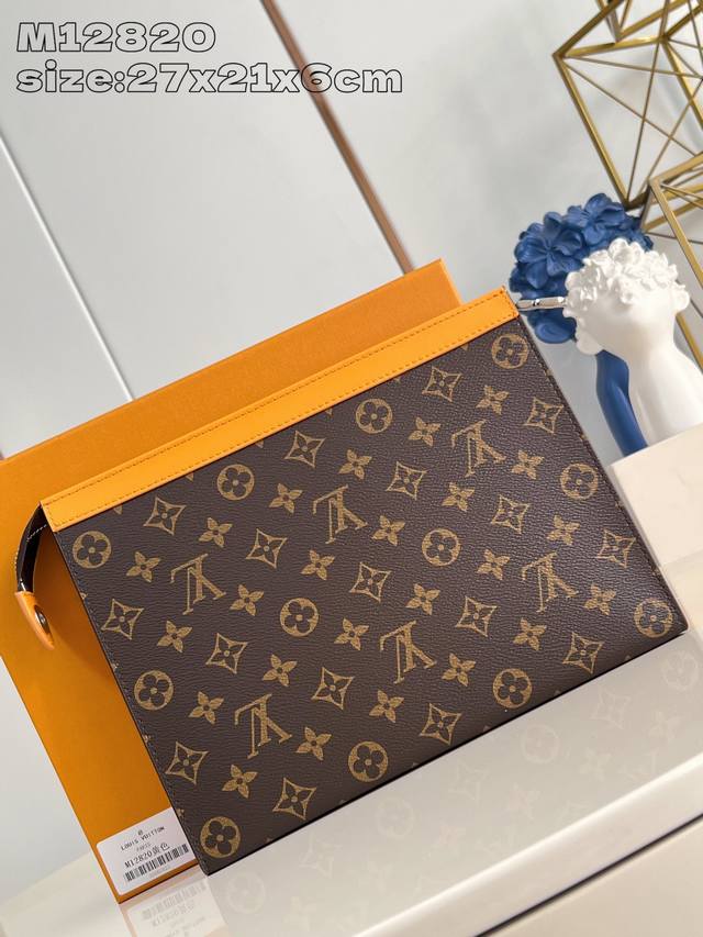 出厂价 顶级原单 M12820黄 這款百搭的pochette Voyage Mm以monogram Macassar塗層帆布製造,並配以彩色牛皮飾邊和相配色調襯裡。收納包適合整理行李箱內的物品,亦可作手拿包攜帶,配備拉鏈設計、內置名片夾層和內置貼袋,更顯實用。27 X 21 X 6 厘米 長度 X 高度 X 闊度