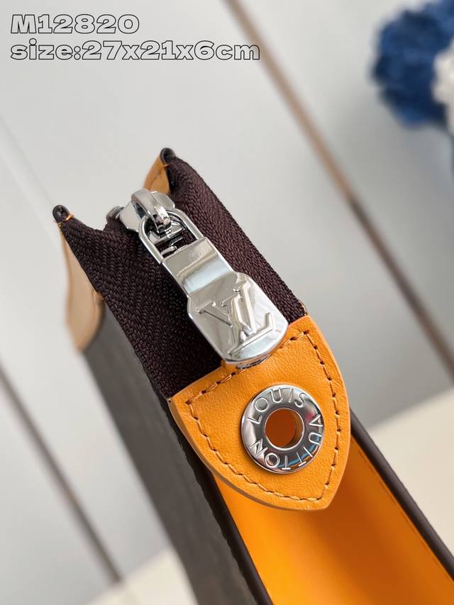 / 出厂价 顶级原单 M12820黄 這款百搭的pochette Voyage Mm以monogram Macassar塗層帆布製造,並配以彩色牛皮飾邊和相配色調襯