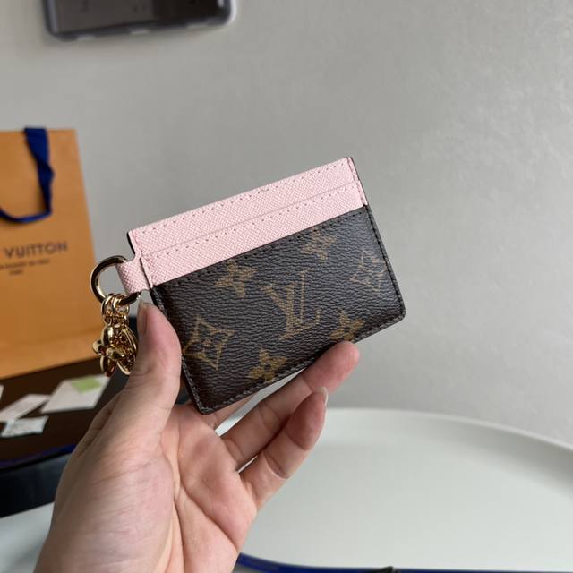 / 芯片版 顶级原单 M82739老花粉色!這款lv Charms名片夾以monogram塗層帆布及牛皮製造,是送禮佳品。名片夾綴有兩個金色monogram Blo