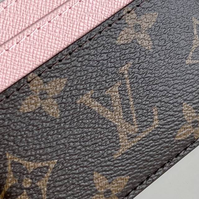 芯片版 顶级原单 M82739老花粉色!這款lv Charms名片夾以monogram塗層帆布及牛皮製造,是送禮佳品。名片夾綴有兩個金色monogram Blossom吊飾,而精巧的設計亦配備五個名片夾層,其中兩個夾層置於兩側,並於中間備有一個更大的隔層。10.2 X 7.3 X 0.3厘米 長度 X 高度 X 闊度