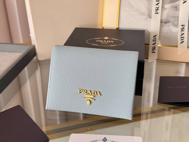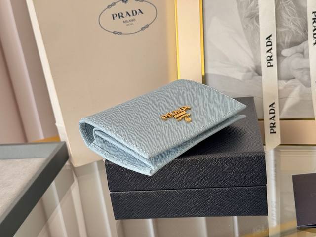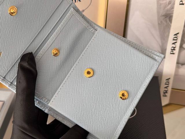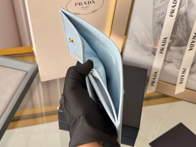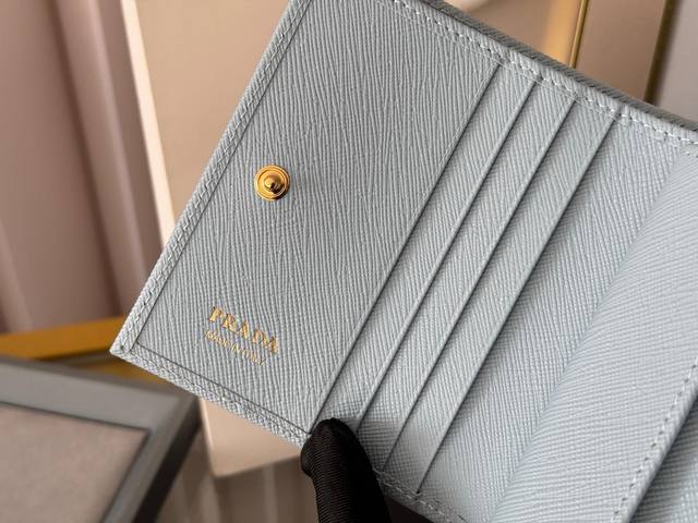 P家最新三角微标短夹;型号1Mv204,Saffiano十字纹皮与进口小牛皮的完美结合,尺寸11.2×8.5Cm,一个票据隔层,三个卡槽,两个内部...