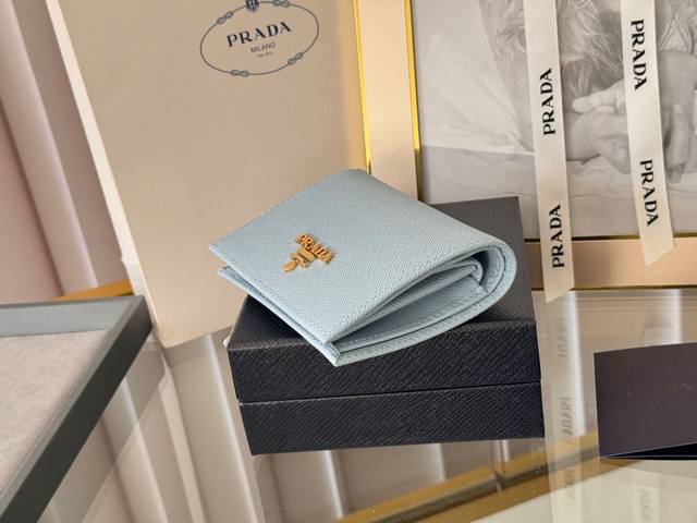 / Prada 女士两折短夹,有零钱袋,硬币袋 型号1M0204,十字纹牛皮 尺寸:11.2X9.5Cm, 简单实用提升个人品味的一款