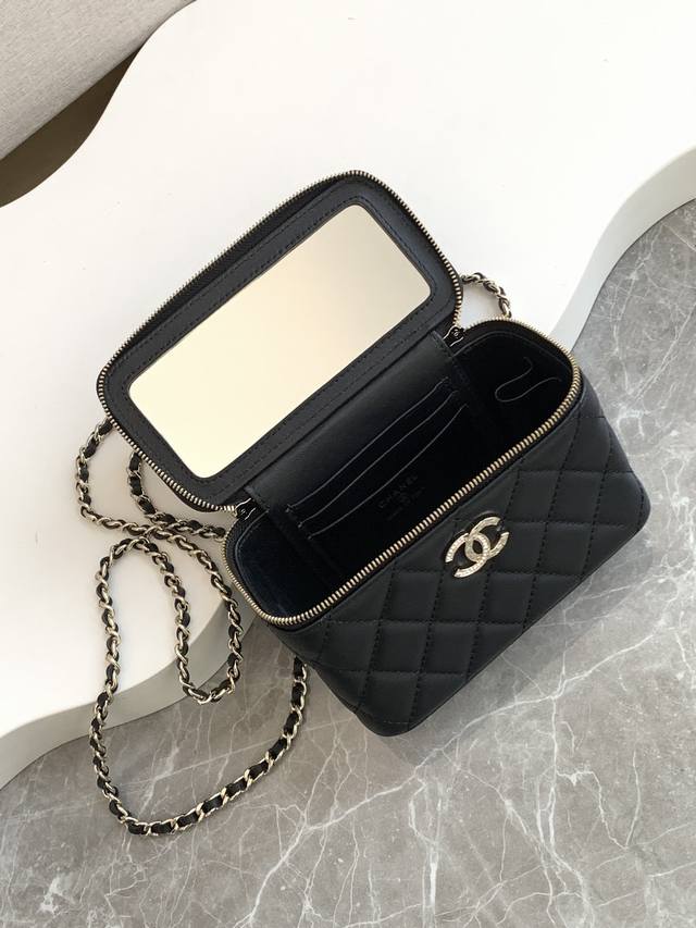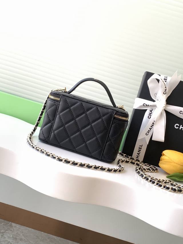 25C口红包精致小巧链条手拿包 小羊皮配金色金属 手柄还有小logo 皮面上一条有弧度的缝线 让整个包看起来更加力挺 荔枝纹的皮面还不易刮花 链条可拆卸 还可手