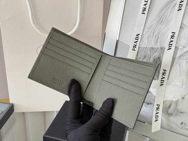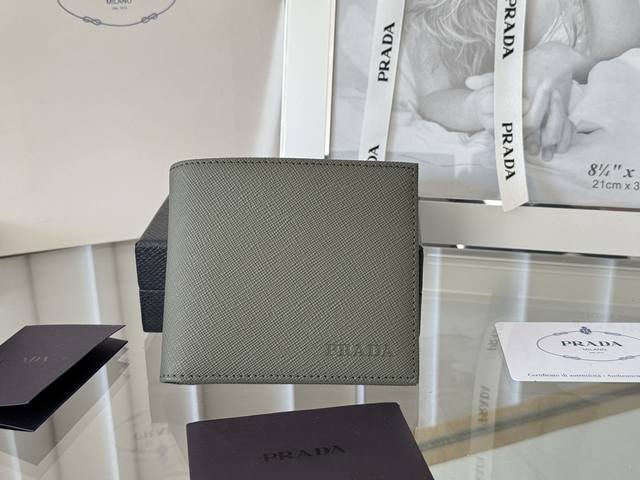 / Prada男士十字纹短夹,好收纳 可放8张卡 现金可放 ,男士必备款 型号2M0513,原单品质, Saffiano十字纹进口五金制作, 尺寸11Cm×9.5C