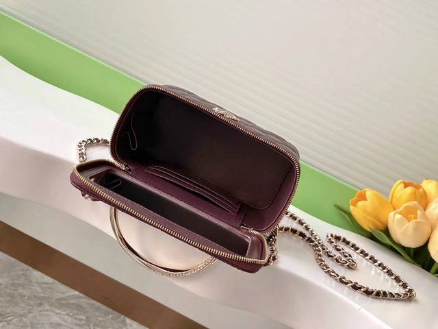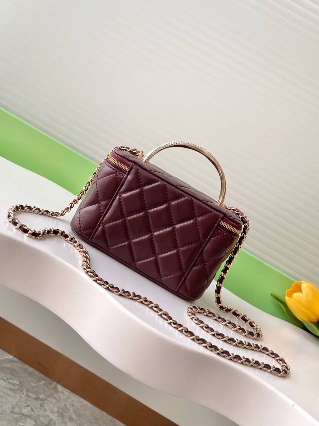 24K限量款钻石手柄 长盒子包 化妆斜跨包配钻手柄 小羊皮金属 五金,手柄精致又贵气,手拎 斜挎 单肩都好看 真的太美了