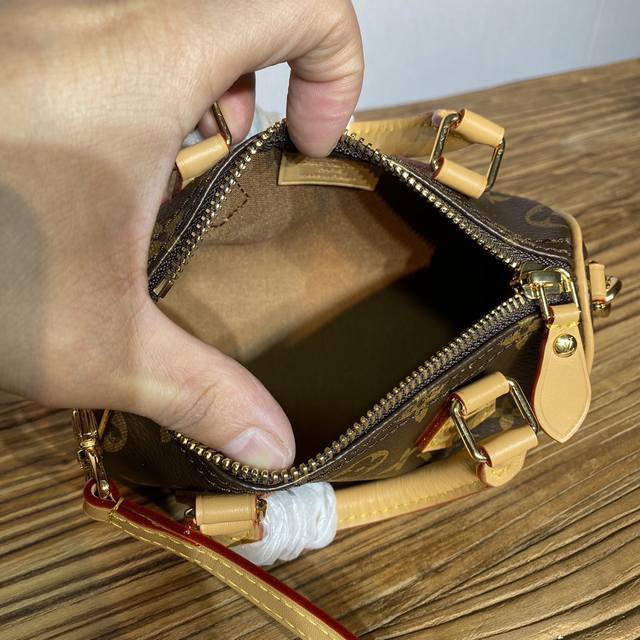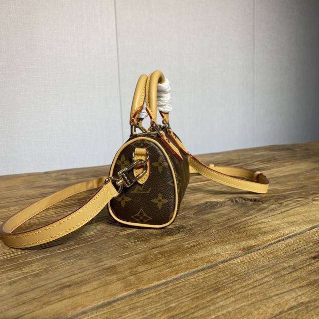 免税版m81085老花 迷你枕头包speedy系列 以经典的monogram帆布制成的nano Speedy手袋,散发极致女人味,是您携带日常用品的理想之选。这
