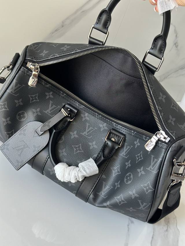 免税版m46655 黑花 Keepall 35旅行袋 尺寸:35X21X6 Cm