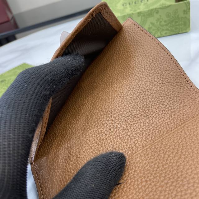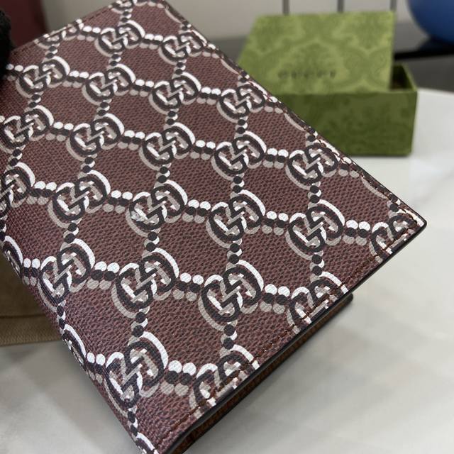 经典gg图案继续以现代风格焕新亮相于全新系列中。这款护照夹以棕色匠心呈现,搭配光影效果经典字母交织图案,打造立体感。