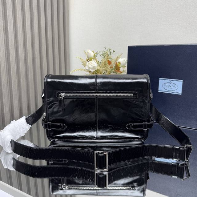 / 顶级原单 新款男包2Vd073油腊皮这款单肩包选用柔软而富有光泽的皮革精心制作,特有流线型廓形,饰以独特的三角形徽标,带搭扣的侧面装饰袢带,可调式皮革肩带。肩带