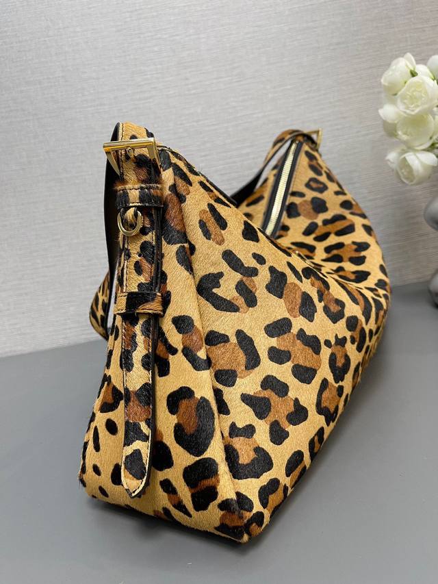 / 顶级原单 新款豹纹皮 大号39Cm 1Bc228手袋到货啦单肩包的设计灵感源自对hobo廓形的探索,线条柔美,颇具现代感,采用马毛皮工艺,超级百搭,背法很多,婉