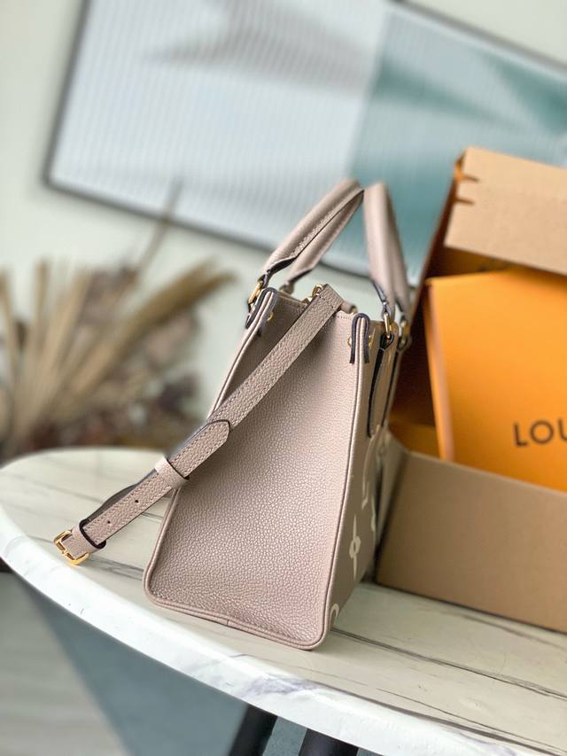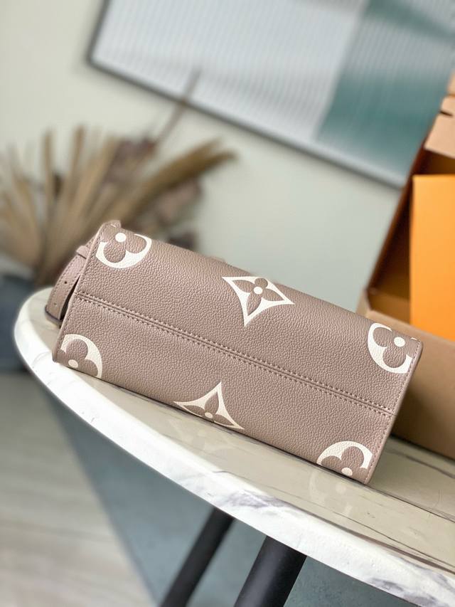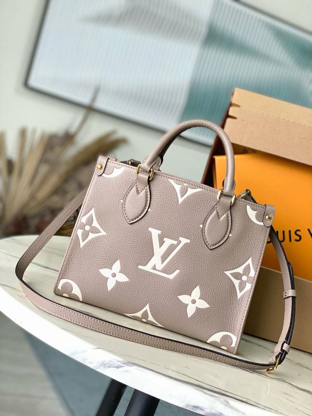 / 头层皮 顶级原单 M45779 大象灰 Onthego 小号 Tote 包向 1968 年的经典 Sac Plat 手袋汲取灵感,以压印 Medium Bico