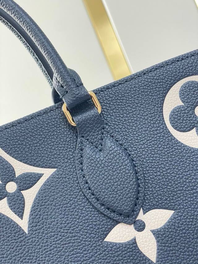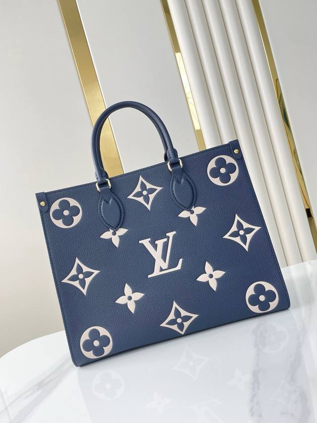 深蓝色 变码芯片头层皮 顶级原单onthego 中号手袋m45495 M47084 将 Monogram 图先案印染后压印软柔于粒面牛皮 其裕充内里容可纳笔记本