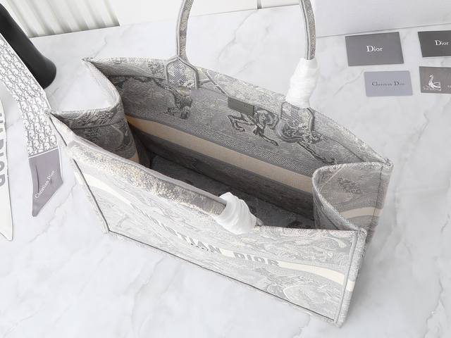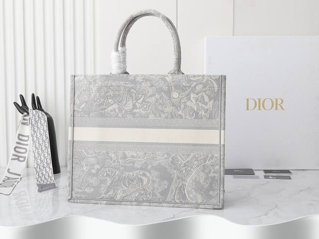 这款 Book Tote手袋由女装创意总监玛丽亚 嘉茜娅 蔻丽 Maria Grazia Chiuri 设计,是体现美学的主打产品。白色款式,通体饰以多色butterfly Around The World图案刺绣,彰显该系列的经典之美,点缀以lenvol Des Papillons Dévoile Nos Désirs Aux ?toiles字样,可收纳各种日常用品。中号款式,正面饰以 Cistian Paris标志,