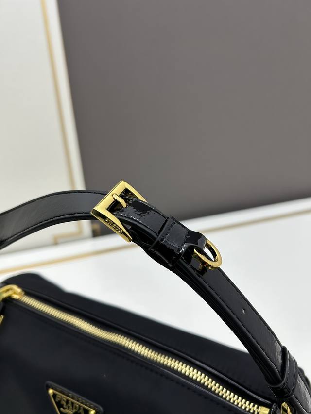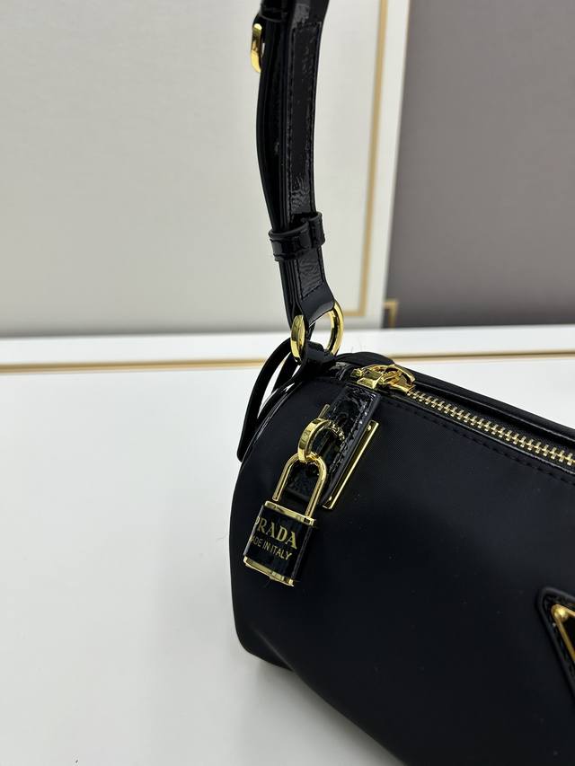这款单肩包采用全头层牛皮材质和皮革细节装饰,精致百搭廓形彰显prada品牌精髓。搭配金色金属五金配件,拉链开合带有优雅挂锁,更加别致。