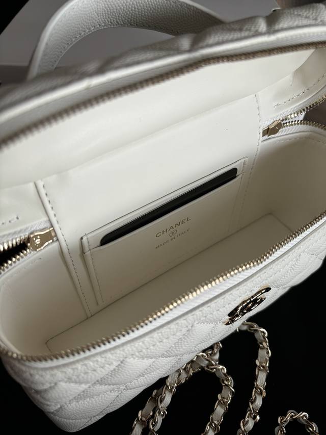 / 时尚新宠 Chane125C春季新品 精致小巧链条手拿包 颗粒小牛皮配金色金属 手柄还有小logo 皮面上一条有弧度的缝线 让整个包看起来更加力挺 荔枝纹的皮面