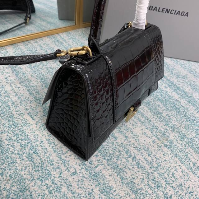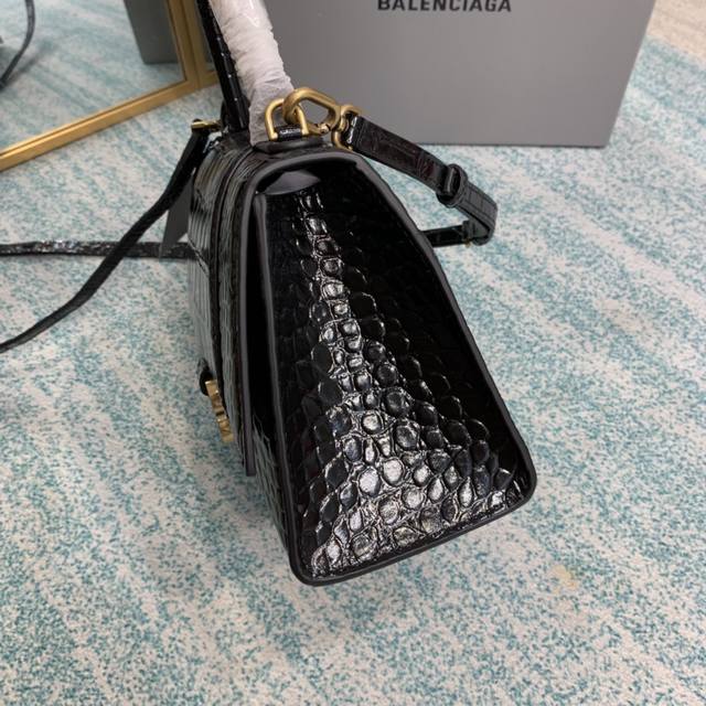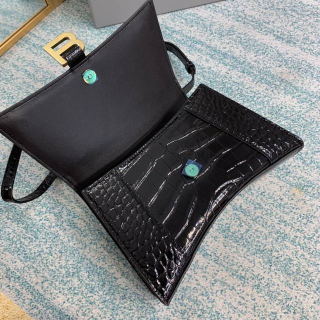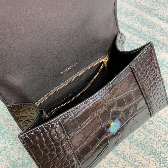 Balenciagα本季重磅hourglass鳄鱼纹沙漏包,独特的标志性弧线形状造型极具辨识度,一眼就让人眼前一亮呀超炫酷!表面光滑平整,外观呈现一轮半月状,上坠一个金属b形拉环,牛皮质感也非常感人非常有腔调!宝宝们使劲买不要停!!