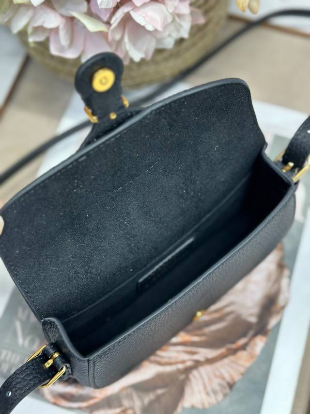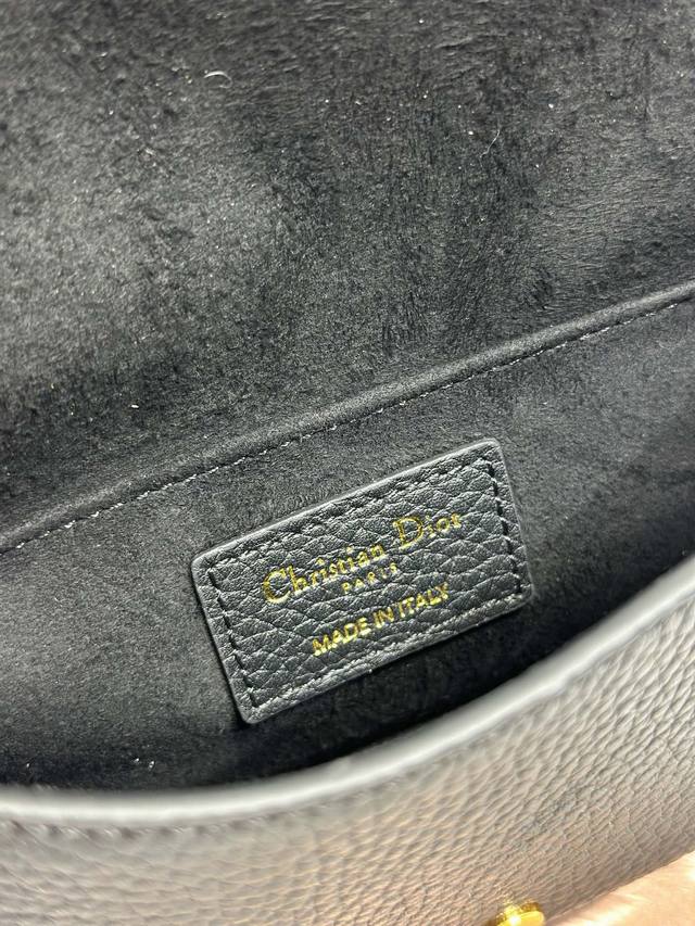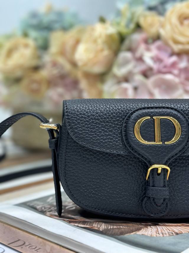 这款 New Dior Bobby 迷你手袋是二零二五早春成衣系列新品,以 Dior 经典设计的精致线条与和谐比例全新演绎水饺包廓形。黑色荔枝纹牛皮革款式,饰以复古金色饰面金属细节。搭配可拆卸、可调节带,饰以优雅的针扣,可手提、肩背或斜挎。