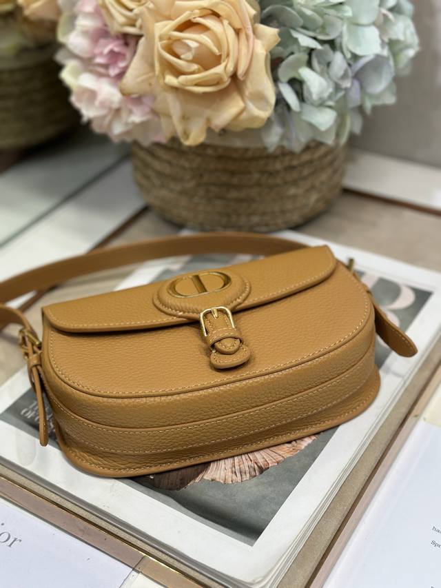这款 New Dior Bobby 小号手袋是二零二五早春成衣系列新品,以 Dior 经典设计的精致线条与和谐比例全新演绎水饺包廓形。土黄色荔枝纹牛皮革款式,饰以复古金色饰面金属细节。搭配可拆卸、可调节带,饰以优雅的针扣,可手提、肩背或斜挎。