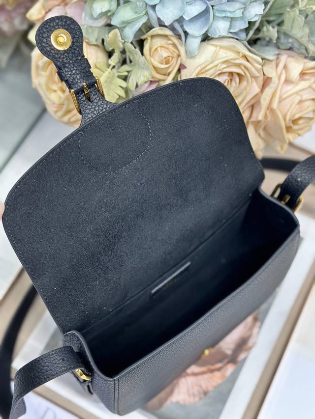 这款 Dior Bobby 手袋是二零二五早春系列新品,以高雅线条和匀称比例全新演绎水饺包廓形,彰显 Dior 风范。采用黑色粒面牛皮革精心制作,内部搭配绒面牛皮革,更添柔软质感,饰以复古金色饰面金属细节提升格调。中号款式,可拆卸、可调节的肩带搭配优雅的针扣调节,可手提、肩背或斜挎。