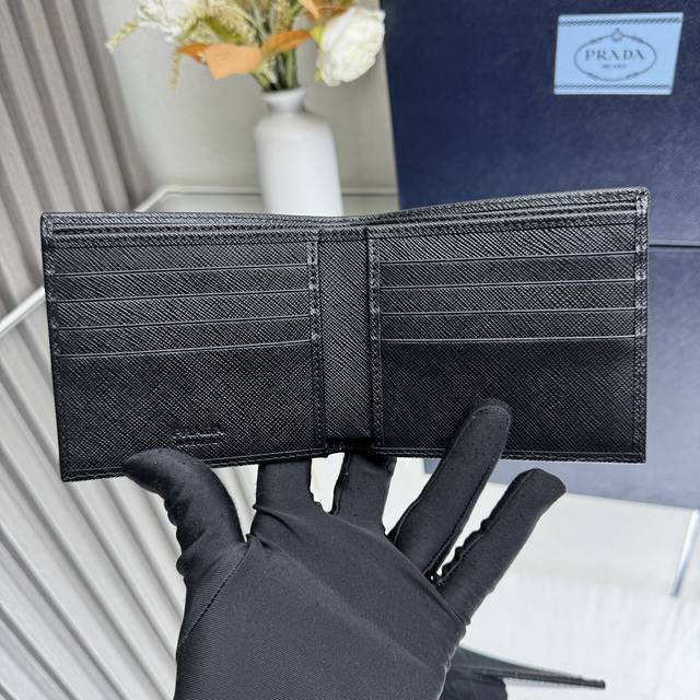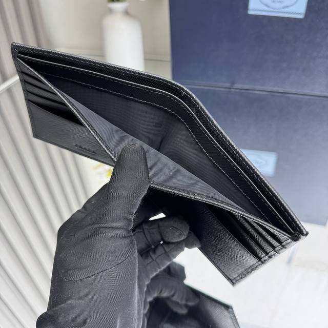 顶级原单 Prada新款男士短钱夹经典爆款型号 513,内码164代工码这款现代时尚的钱包选用再生尼龙 Re-Nylon 打造,这种创新面料来自海洋中回收净化的塑料。采用saffiano皮革细节装饰,内部设有多个卡槽和两个票据隔层。拥有八个卡片插袋以及多个夹层。设计实用,彰显都市风格。尺寸:长11Cm*高9.5Cm