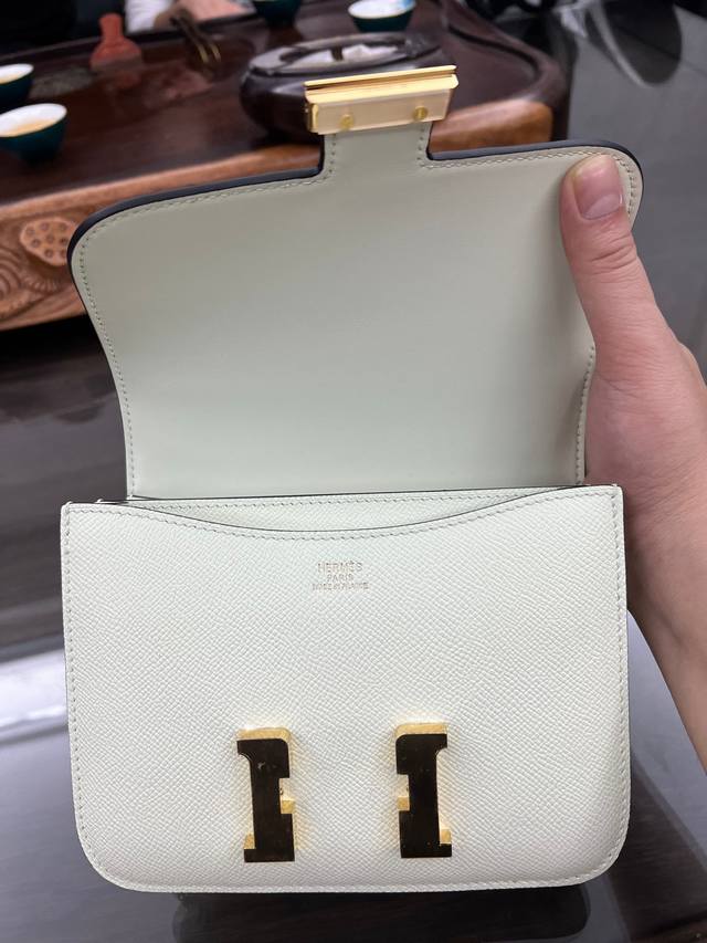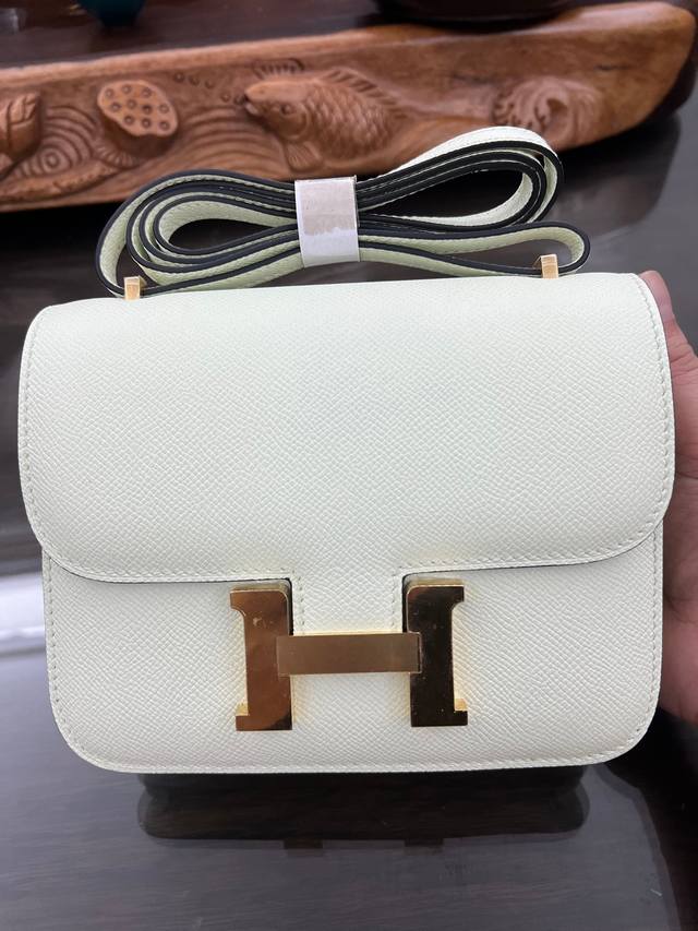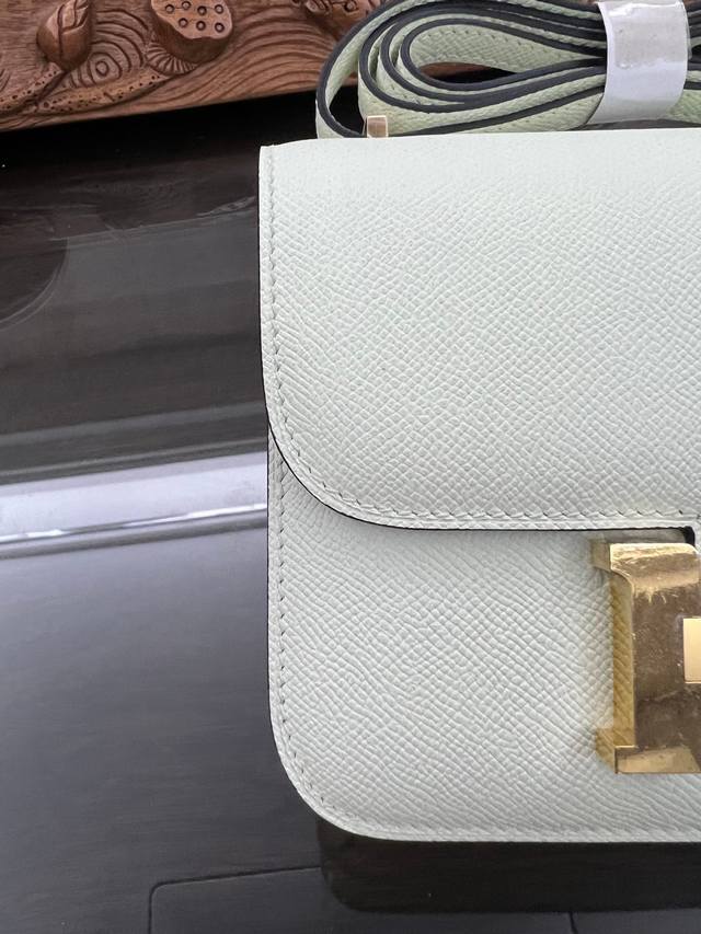 Constance To Go斜挎包 细节图 颜色黑色 皮质 Epsom 现货 尺寸:长20.5 X 宽13 X 厚2厘米 爱马仕大康斜挎包,有肩带,“H”锁扣