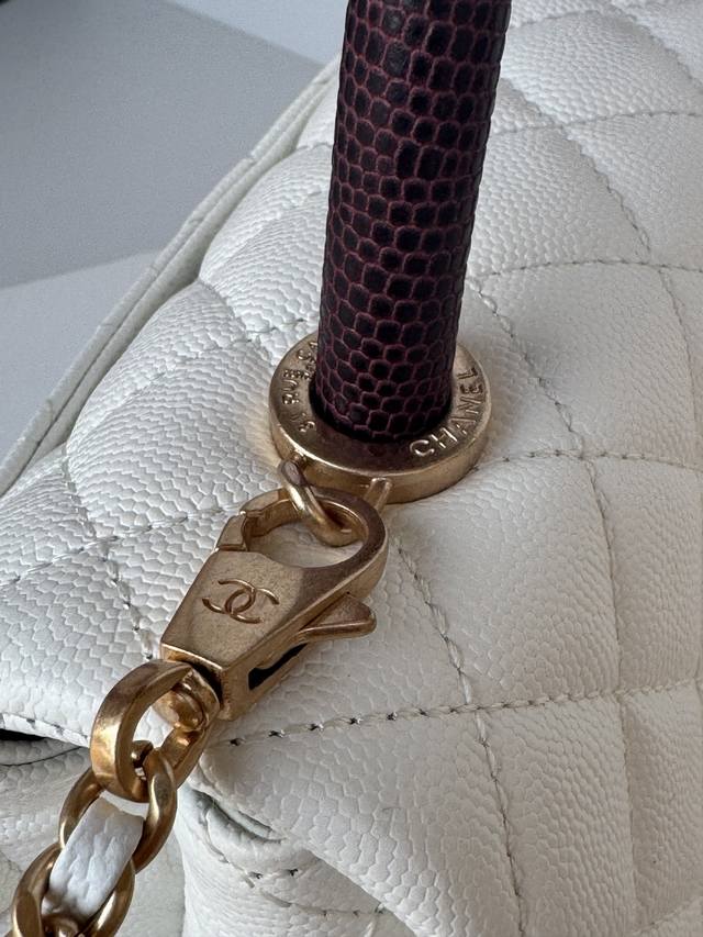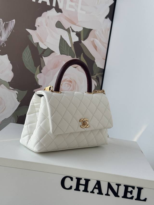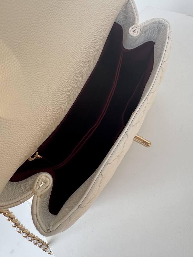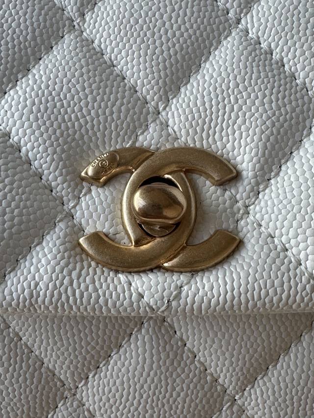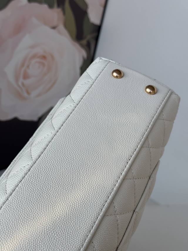 / A92990最新棱格细颗粒压花小牛皮配与小球纹手柄单肩斜挎手提中号口盖包,颗粒压花小牛皮 、小球纹皮与金色金属 ,尺寸:24Cm