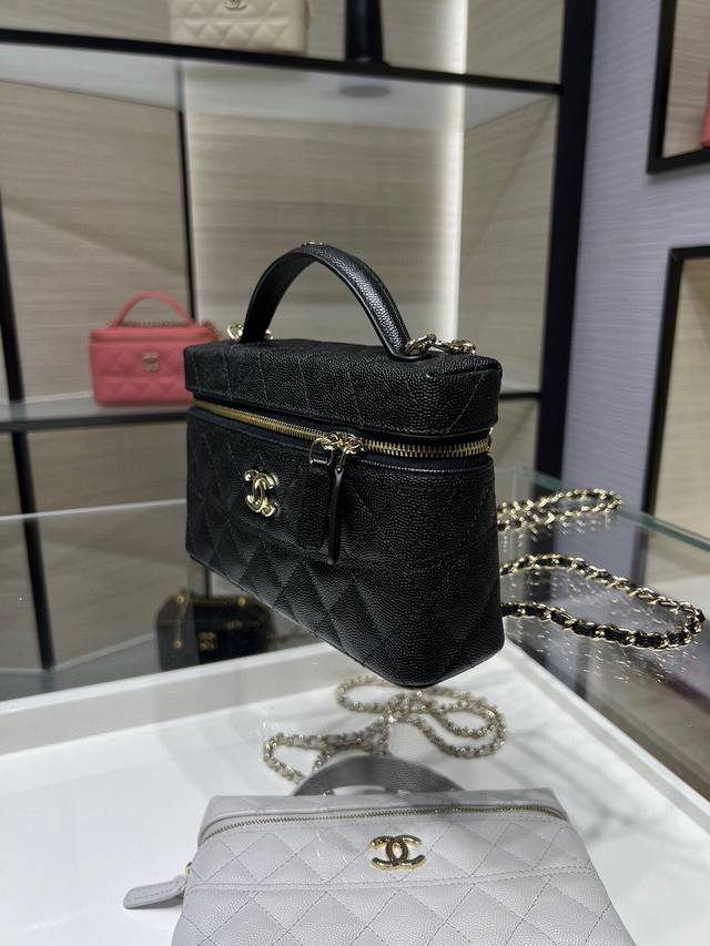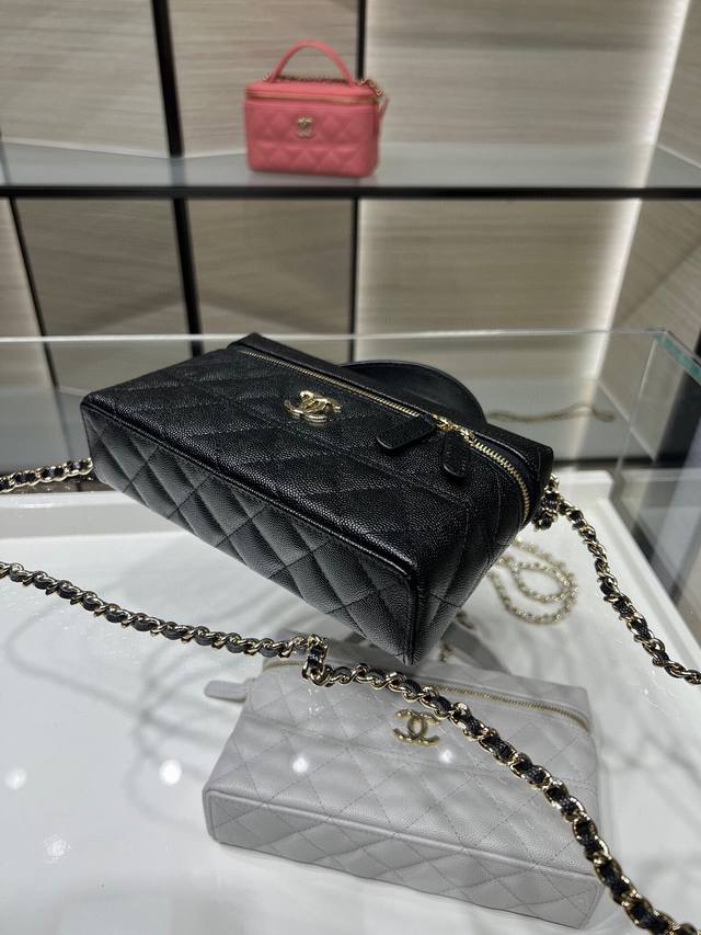 Ohanel 25C新款 Lp链条 手柄化妆包 乳白色 牛皮 单肩斜挎手提包