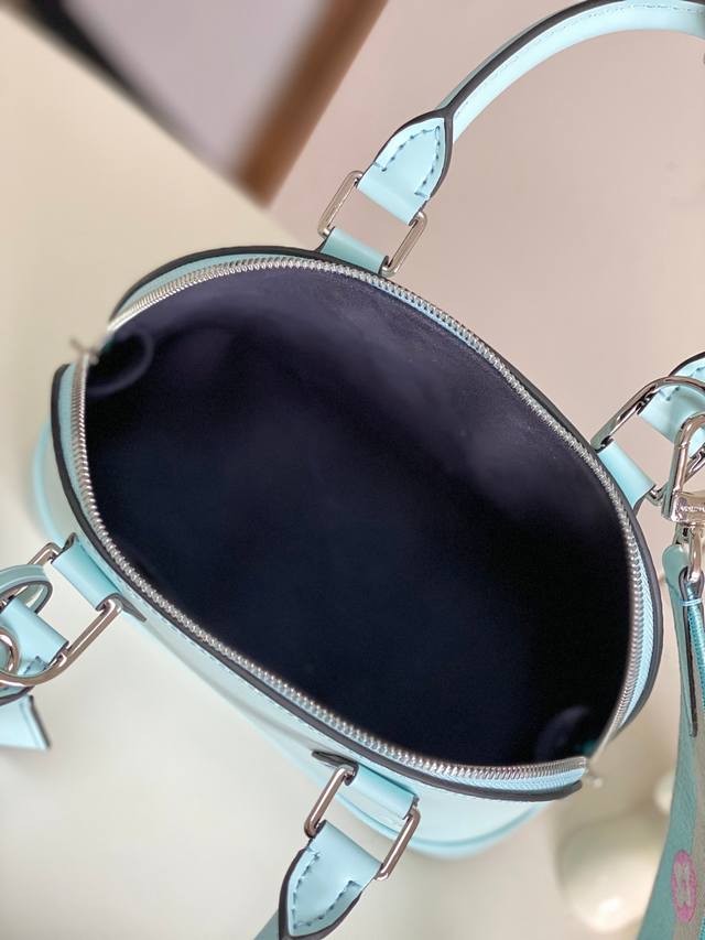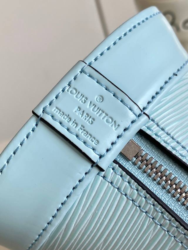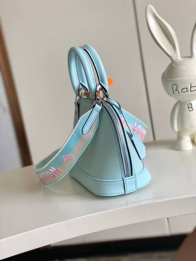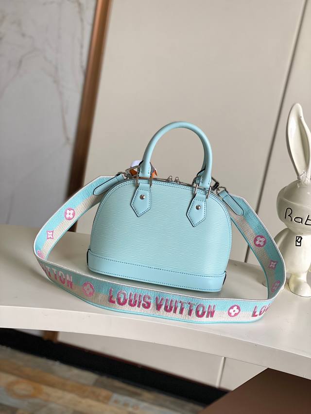 Alma Bb 手袋以缤纷 Epi 皮革呈现路易威登标志性的设计之一,再为提花肩带两面分饰路易威登标识刺绣和 Monogram 花簇,搭配工致缝线边缘,以动感新意汇聚视觉焦点。