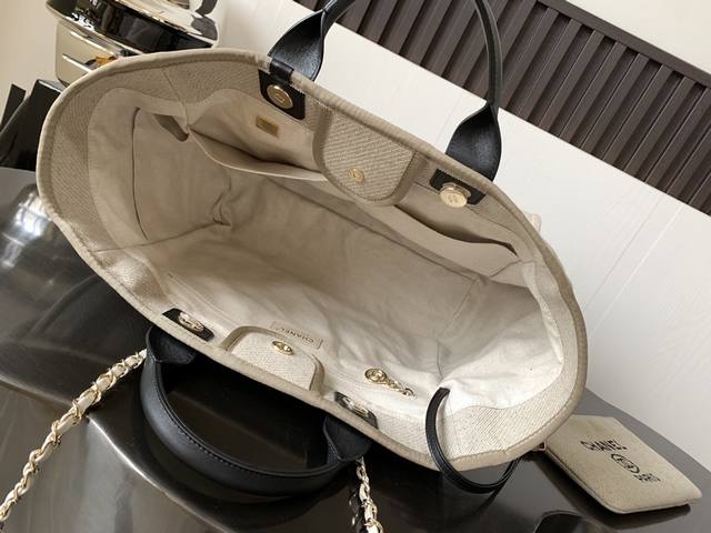 Chanel 新配色子母沙滩tote 雨露麻布全钢五金 尺寸:38X30X22Cm 大号:66941 有手柄