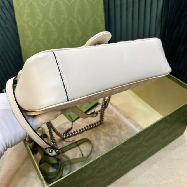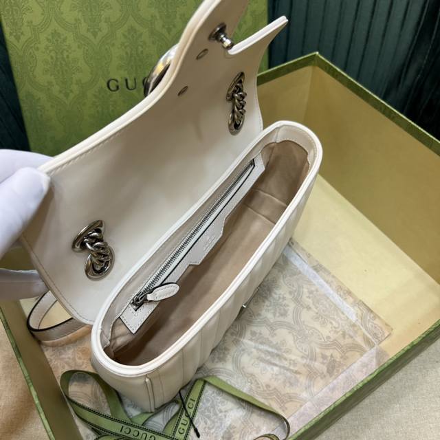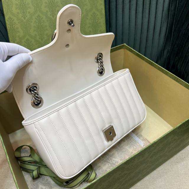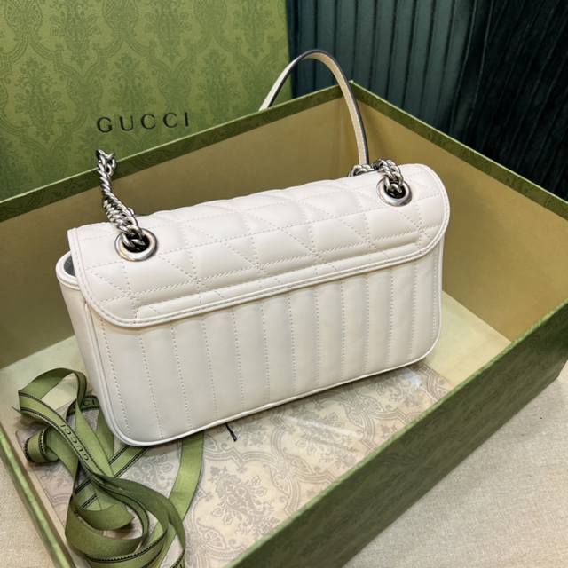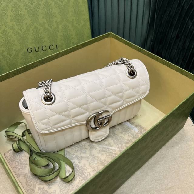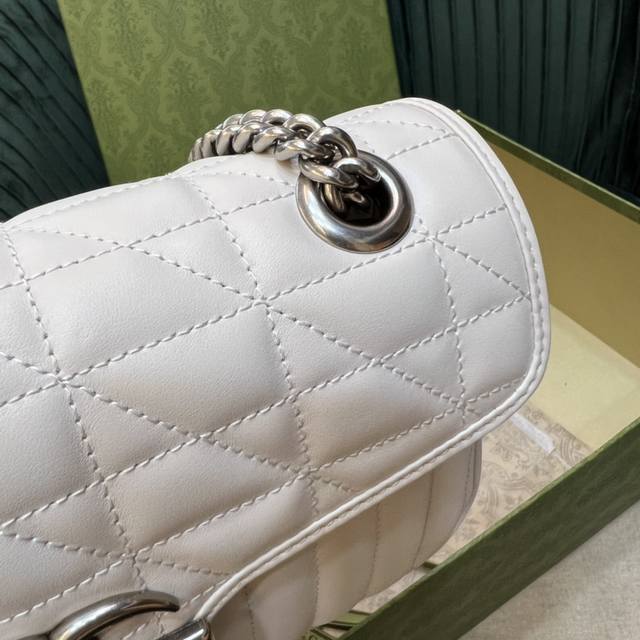 顶级 全新几何风格设计绗缝皮革带来耳目一新的视觉。复古银色双g搭扣唤醒崭新的向往简单的翻盖设计,立体棱格绣花在灯光下让整个包活跃了起来,充满了少女那般秀气之美,直勾勾地勾引着你、也是全球打人必备的百搭单品!