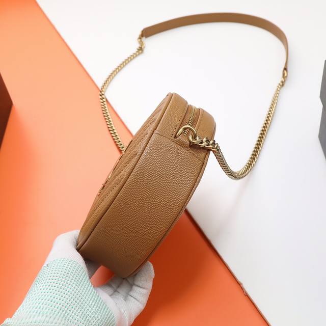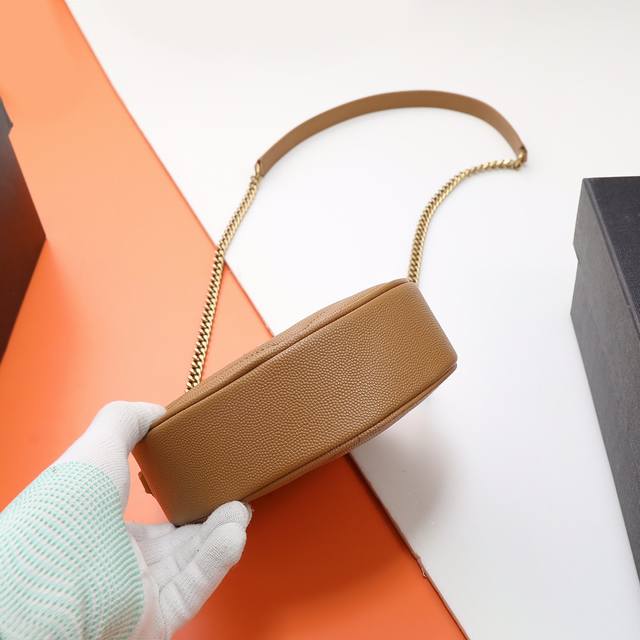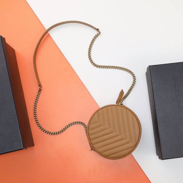 专柜最新vinyle可爱小圆包登场!选用进口高品质鱼子酱牛皮精心制作,轻巧得来手感又特别细腻!表面的v型缝线充盈饱满,低调中透露出少许个性设计感!五金为轻度磨砂微微做旧质感,相比起亮面五金显得更为耐看高级!直径17Cm迷你可爱的尺寸却足以容纳日常出门所需!小小一只,真的特别精致可爱!型号:610436。尺寸:17X17X5.5Cm