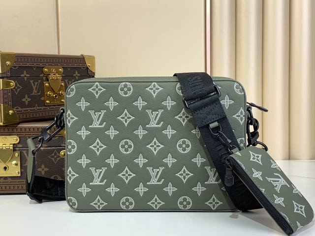 / 出厂价 Trio邮差包 M12490 军绿色 条纹压花 本款 Trio邮差包取材monogramshadow压纹牛皮革,以monogram图案 烘托清新户外格调