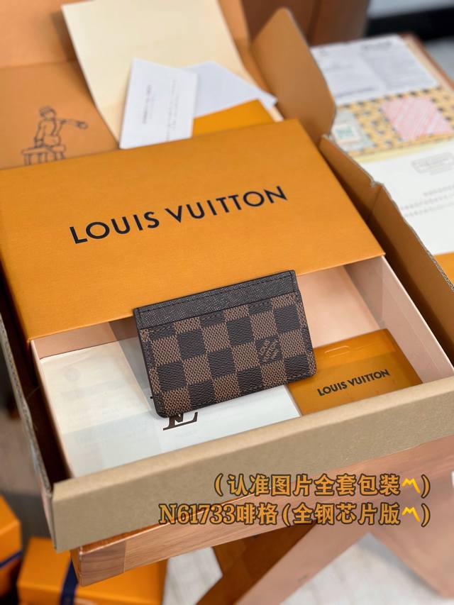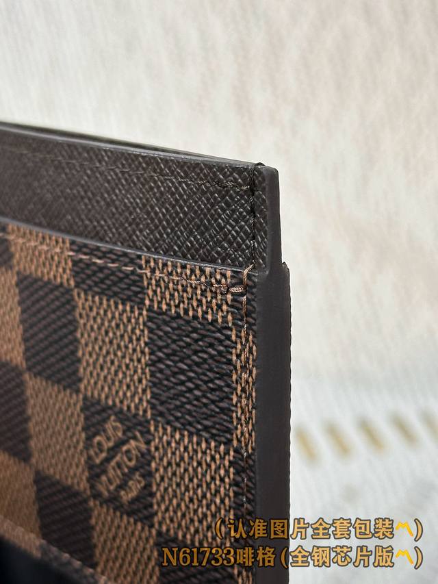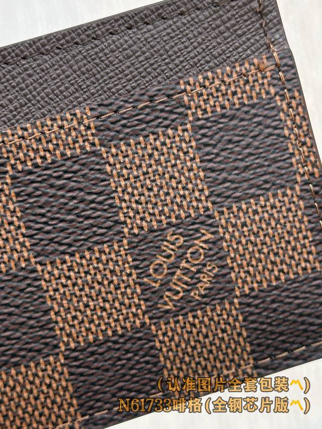 / 出厂价 N61733 啡格 A级全钢 个性定制版!变码芯片、Double 卡片套 這款精巧而時尚的卡片套以品牌最新的monogram Eclipse塗層帆布製作