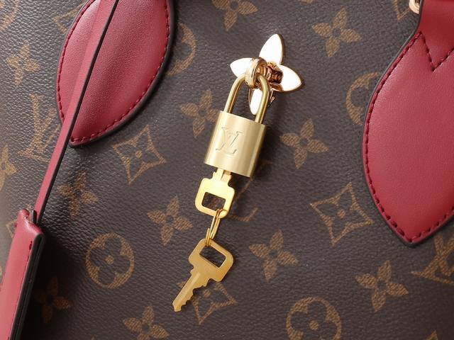 大 ,小 升级原版 M44351 M44350 M44359 这款Flowerbb拉链Tote手袋采用柔软的Monogram帆布打造,配有光滑的皮革手柄、肩带及边缝,闪耀的金色金属鲜花挂锁是点睛之笔。多功能小号手袋外形柔和圆润,为休闲造型增添路易威登标志性的柔美气质。大尺寸36-28-17,小尺寸29-23.5-13.5