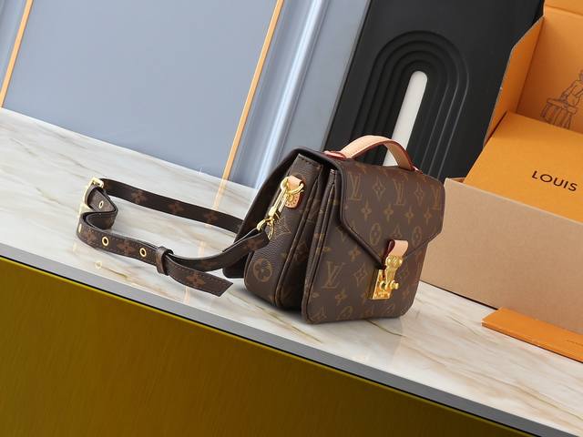 升级原版 M40780小号 Metis 邮差就是有一种魅力让好多妹纸投怀送抱,手袋整体小巧的造型散发出优雅的气息,有收缩的皮质手提,即使拿在手中也是足够气派,老