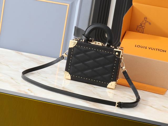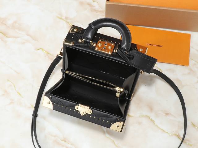 独家背景 顶级原单M45531桃色M45571黑色黑色Petite Malle Souple 手袋取材 Monogram 帆布,融入铆钉皮革边角和皮革名牌,将制