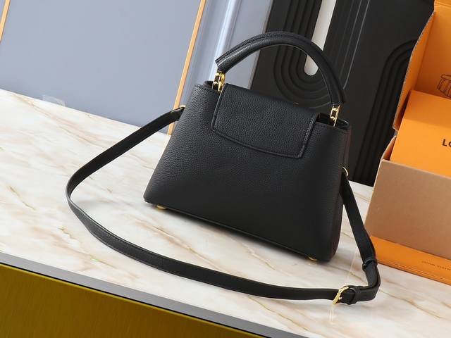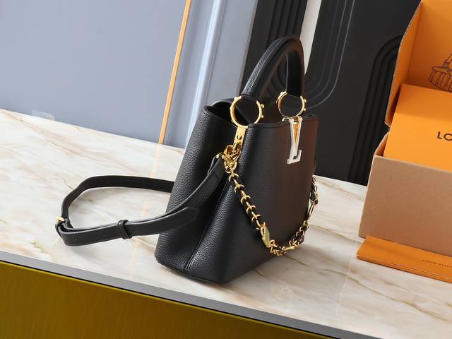 升级原版 M23949 M23950 M24471 M23951本款 Capucines Bb 手袋拥有华美 Lovelock 编织链条,以链环衔接手绘珐琅 Monogram 元素和 Lv 铭纹挂锁。撞色皮革构筑标志性 Lv 标识,雅致气息不言而喻。尺寸:27 X 17.5 X 9.0 厘米 长 X 高 X 宽