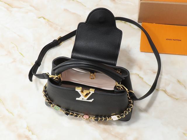 升级原版 M23949 M23950 M24471 M23951本款 Capucines Bb 手袋拥有华美 Lovelock 编织链条,以链环衔接手绘珐琅 M