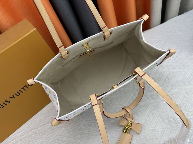 M13079 新款白三彩 Lv路易威登女士单肩包 村上隆联名 托特包 尺寸34