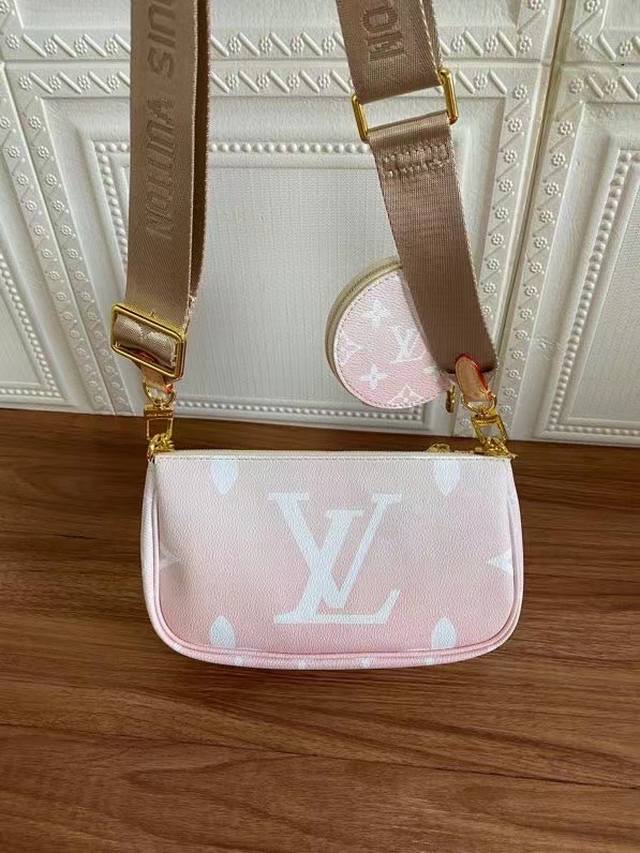 / 独家实拍M57633蓝色M57634粉色 M44823老花Multi Pochette Accessoires 手袋以 Monogram Giant 帆布打造手