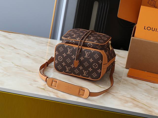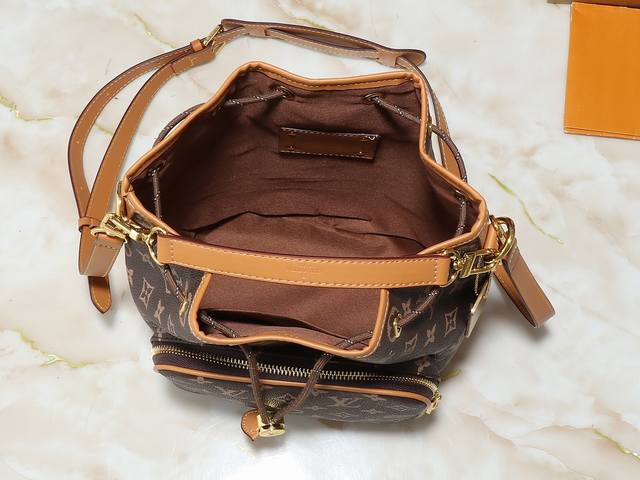 大 .小 升级原版 M14199 M14017 Noe Cargo 是一款小巧的水桶包,由亮面牛皮革构型,呈现尼龙般的科技感光泽,内衬采用深沉色调织物。金属件,包括连接在球形链条上的Lv字母在内,成为这款单色手袋上的唯一色彩调和元素。内设宽敞前袋。