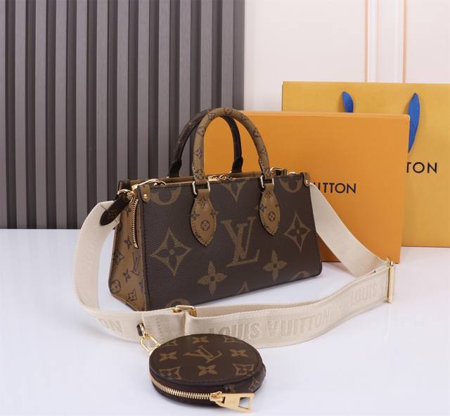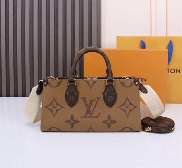 顶级原单 独家实拍 M46653 本款 Onthego 托特包融合 Giant Monogram 和 Monogram Reverse 帆布,焕新演绎 East West 的充裕构型。可拆卸圆形零钱袋丰富细节,Toron 顶部手柄和可拆卸宽幅肩带实现多种背携方式。25 X 13 X 10厘米 长度 X 高 X 宽