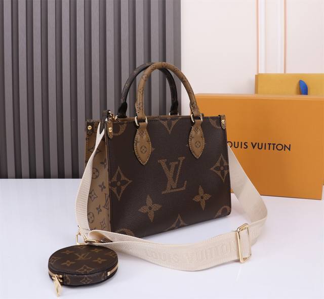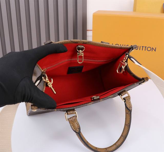 / 原单加强版 质量全面升级 独家实拍背景图、 M46373。本款 Onthego 小号手袋拼合 Monogram 和 Monogram Reverse 帆布,Mo