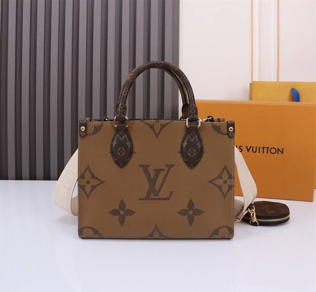 原单加强版 质量全面升级 独家实拍背景图、 M46373。本款 Onthego 小号手袋拼合 Monogram 和 Monogram Reverse 帆布,Monogram Giant 图案点缀其上。Toron 手柄和饰有品牌铭纹的提花织纹肩带构筑视觉反差,可拆卸零钱袋适宜存放零钱或玲珑小物。时尚气韵与多样功能兼备,成就日常良伴。25.0 X 19.0 X 11.5 厘米 长 X 高 X 宽