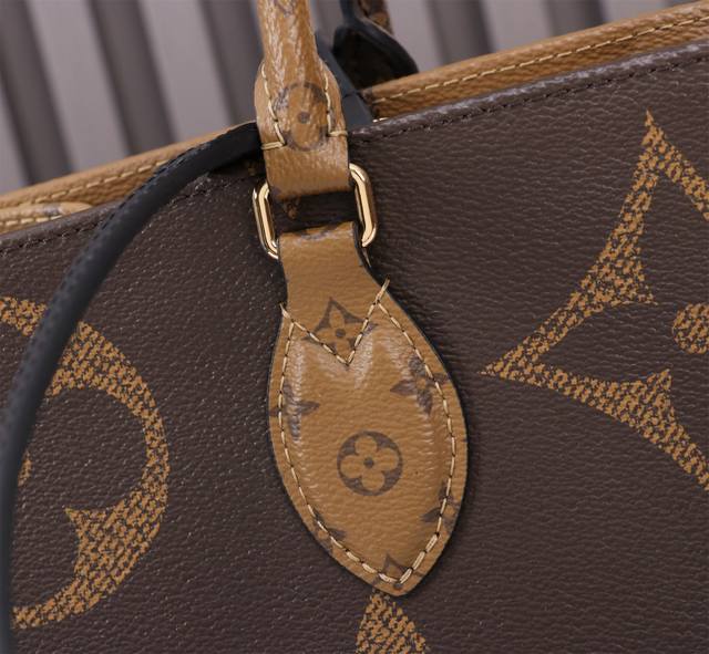 原单加强版M45320 黑皮长肩带 质量全面升级 独家实拍背景图、Onthego 手袋在 Monogram Giant 帆布的衬托下醒目迷人,侧边与手柄点缀 Monogram Reverse 图案,相似风尚中窥见色彩与纹理的变化。大号构型内含充裕容量,搭配肩带与 Toron 手柄,日常生活随心出发。详细特征41.0 X 34.0 X 19.0 Cm 长 X 高 X 宽 Monogram 和 Monogram Reverse 涂层帆布Monogram Reverse 饰边超细纤维内衬2 个 Toron 手柄