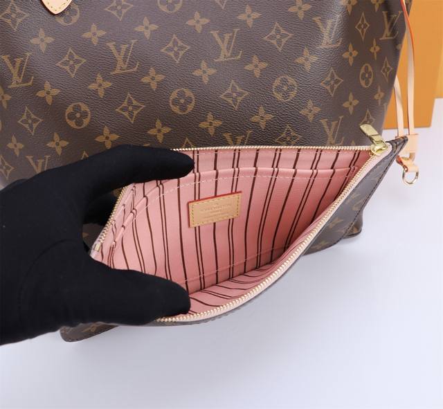 经典购物袋路易威登新款 Neverfull 全新演绎经典手袋,探索袋内精致细节。重新设计的内袋采用了清新的织物内衬和灵感源自路易威登档案馆的复古细节,最值得称道的莫过于可脱卸式拉链手包,它既可单独作为一只精致手拿包使用,亦可作为额外的口袋。 明快的内衬色调为 Monogram 经典帆布增加了更多活泼生动之感。