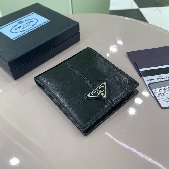 / 顶级原单 Prada新款男士短钱夹经典爆款型号2M0738,内码164代工码 这款钱包选用雅致的亮面皮革制成,勾勒流畅线条与经典几何图案造型,彰显精致优雅的摩登