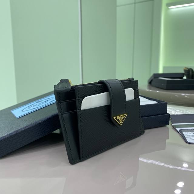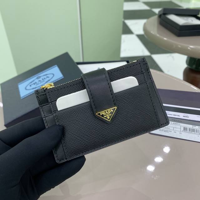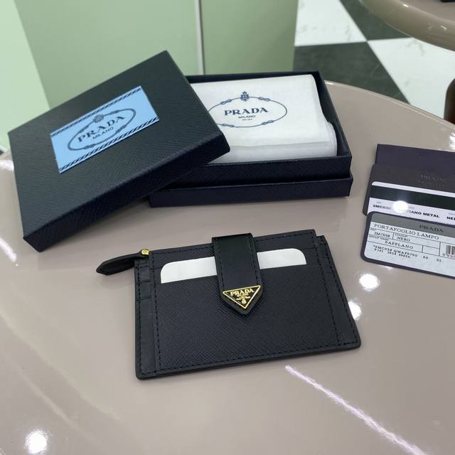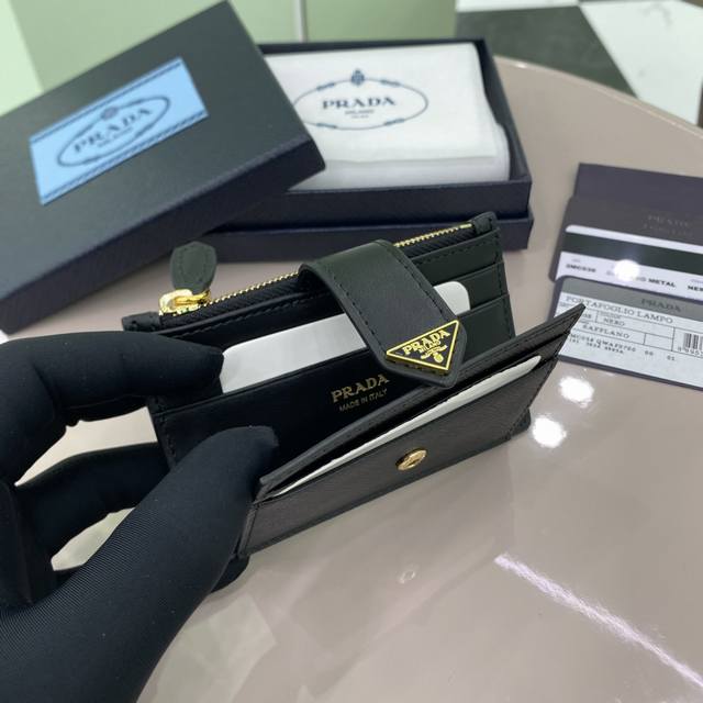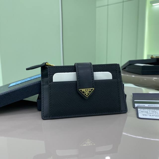 顶级原单 Prada爆款女士卡包专柜最新款式,官网同步,正品开发,型号1Mc038,164代工码这款精美的卡片夹结合光滑皮革和Saffiano皮革细节。Saffiano皮革呈交叉排线纹理,为Prada的标志性材质。设计简约大气,涂珐琅三角形徽标装点其上,展现标志性元素。同时配有拉链袋,设有五个卡槽尺寸:长12Cm高7.5Cm