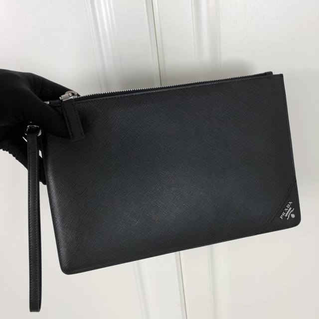 Prada 2Ne007男士手包 进口saffiano十字纹+配里布 经典倒三角标徽章 简洁大方 背面扁平手柄 配手腕带 随身携带方便...