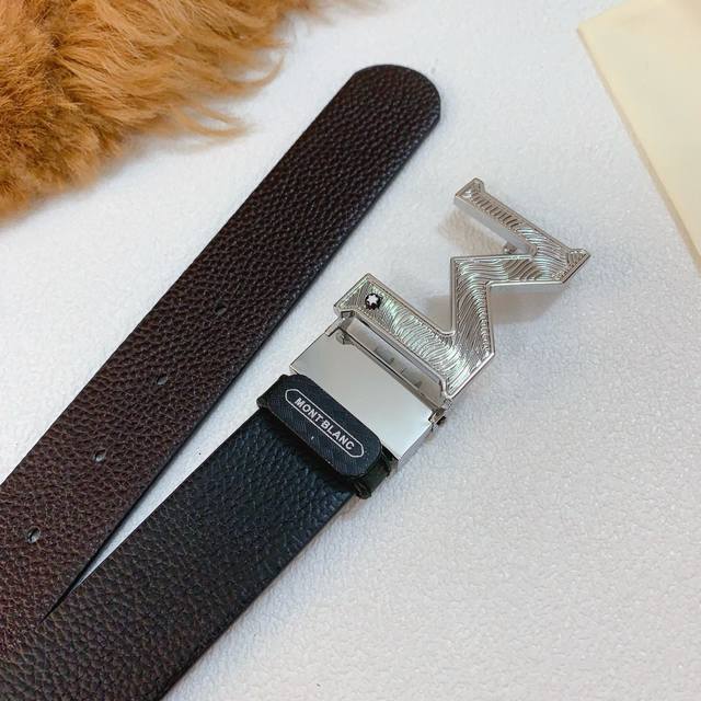 万宝龙新款纯钢自动扣系列,内穿式,宽度3.5Cm,配正版包装,新款压花带身工艺,五金精品打磨材质,头层牛皮,正版开模,...